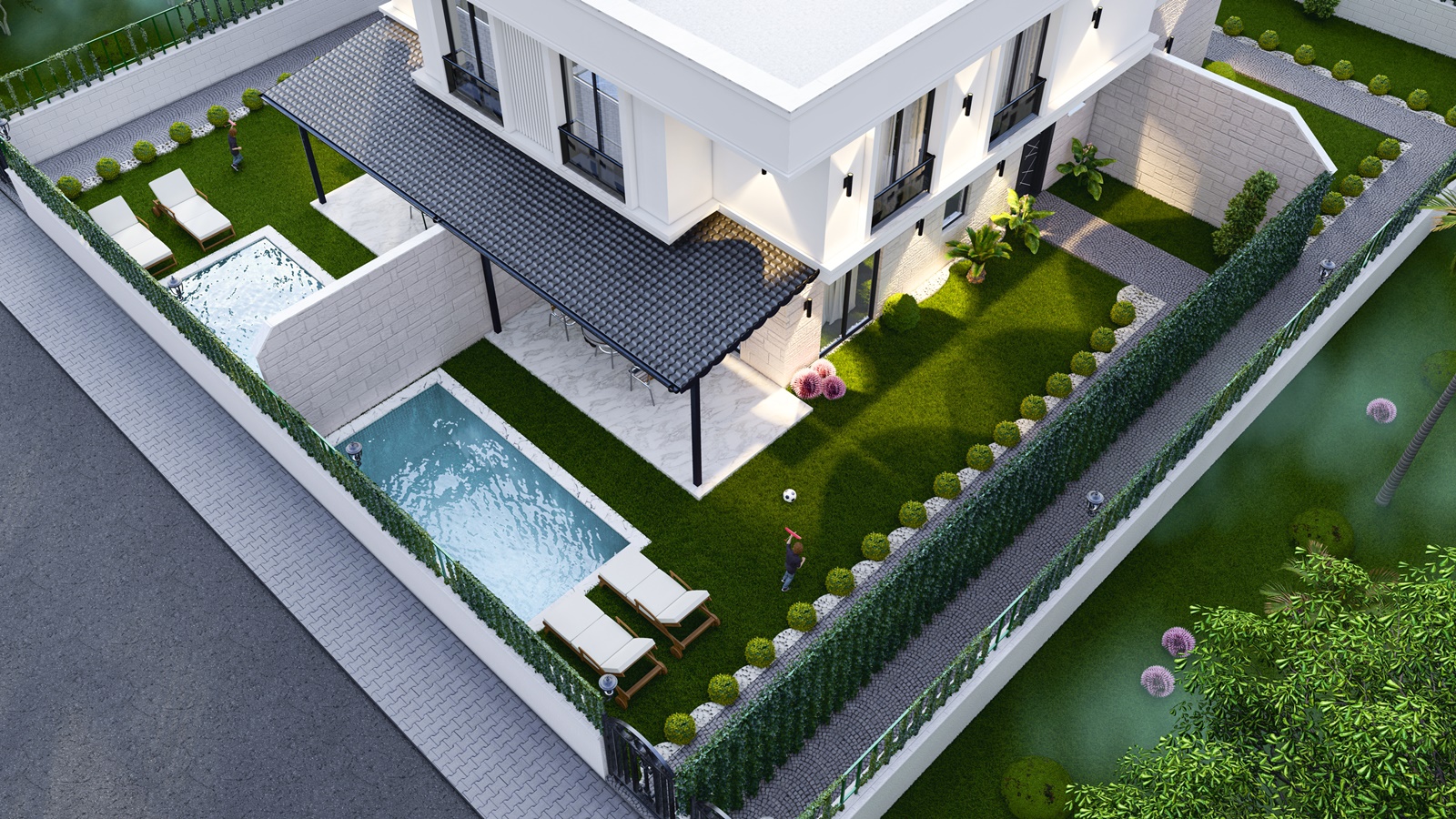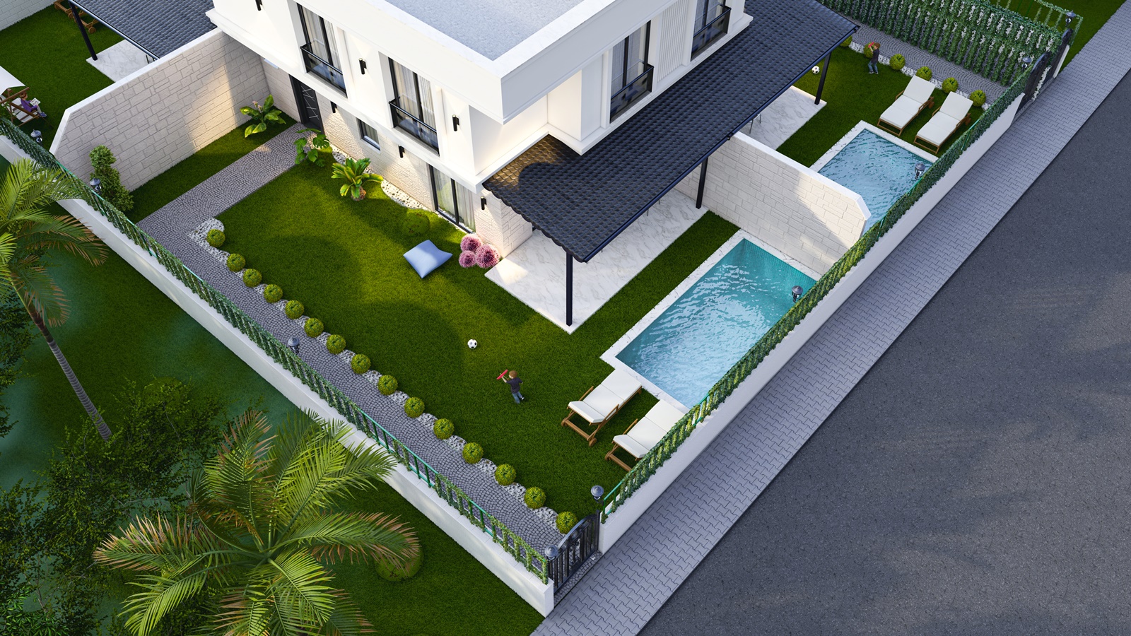 Denize sıfır, müstakil bahçeli ve müstakil havuzlu üçüz villa.